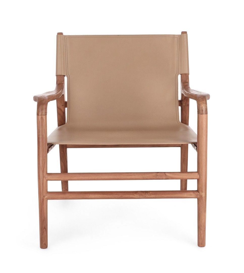 CAROLINE: Luksusowy fotel lounge ze skóry i drewna tekowego