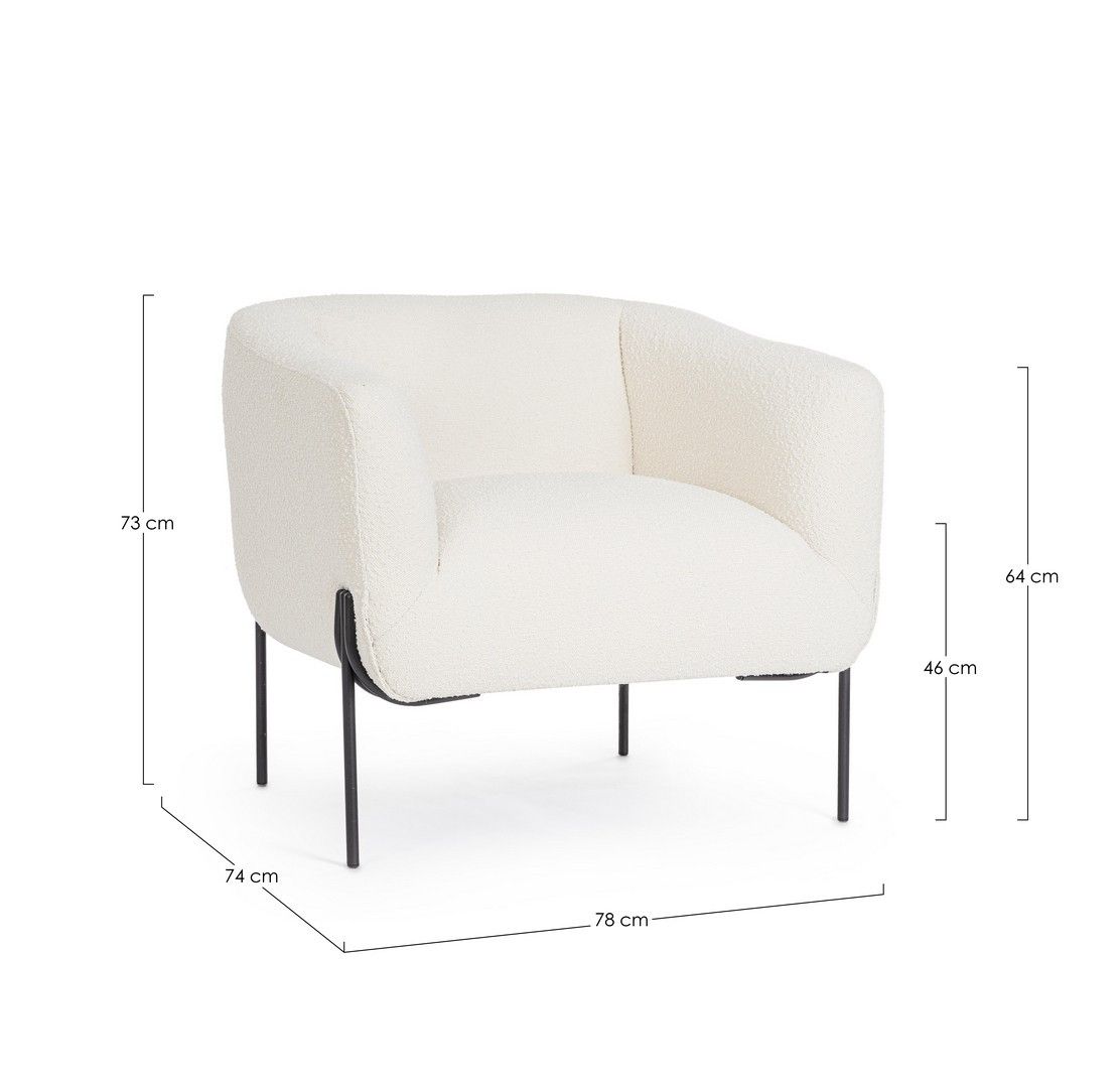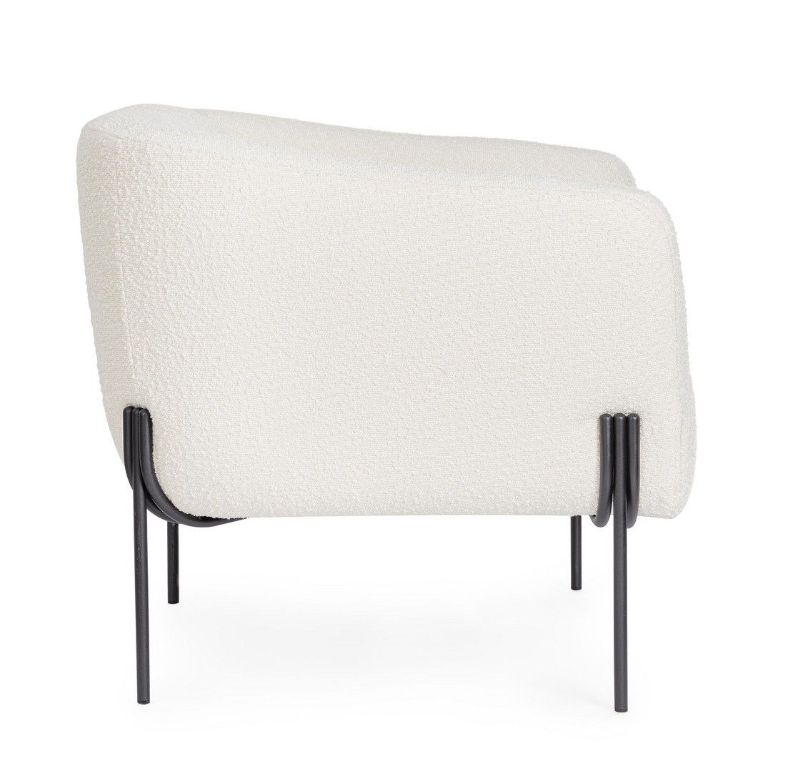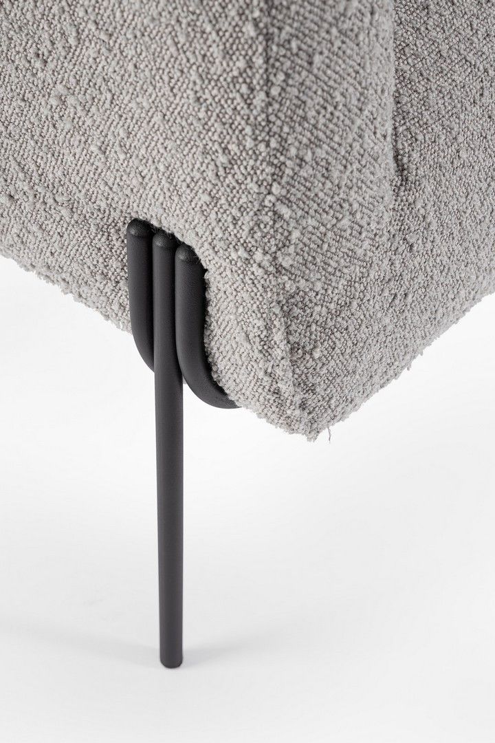 Tapicerka to modna, strukturalna tkanina bouclé (poliester) – jest wyjątkowo przyjemna w dotyku i wnosi do wnętrza ciepłą teksturę.