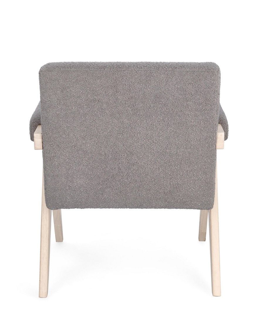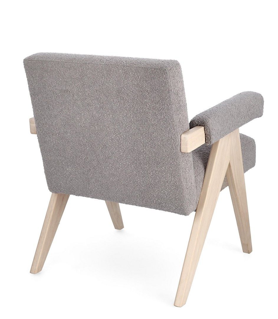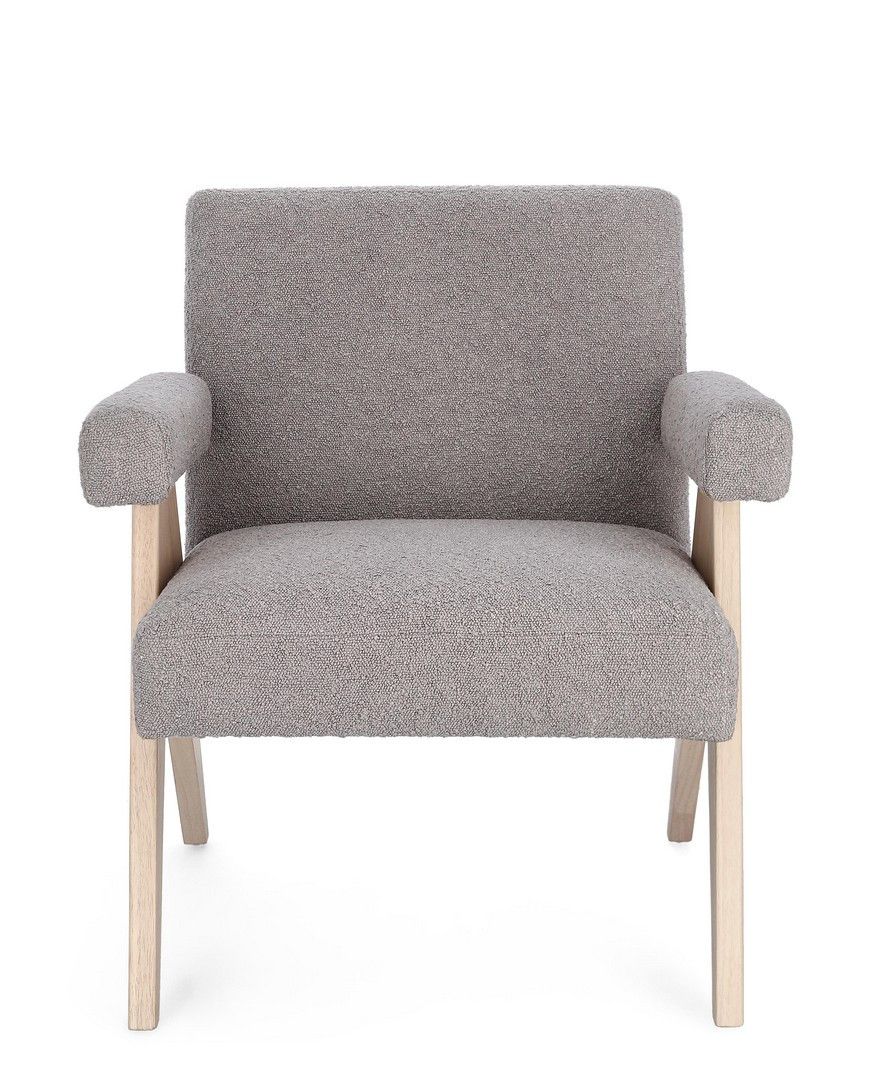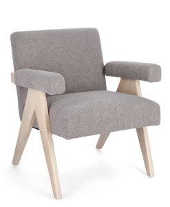 Fotel ma solidną, drewnianą konstrukcję oraz toczone nogi wykonane z drewna kauczukowego (rubberwood), które jest trwałe i stabilne. Całość tapicerowana jest 100% poliestrową tkaniną (Tessuto) w ciepłym odcieniu Taupe (Szarobeżowy).