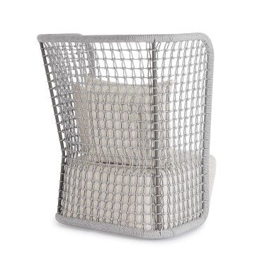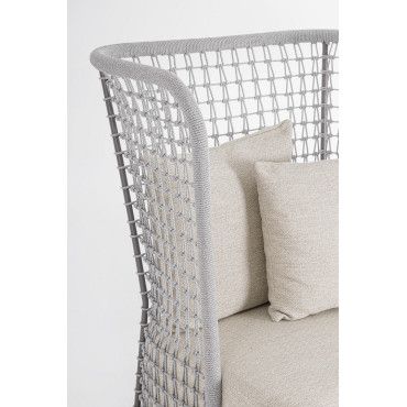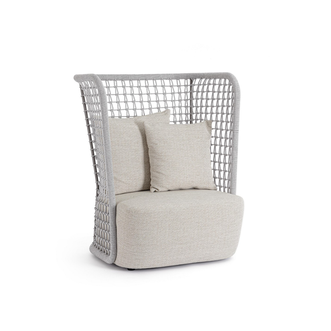Plecionka: Oparcie ma formę ręcznej plecionki z liny Olefin, która jest trwała, odporna na promienie UV i wilgoć.