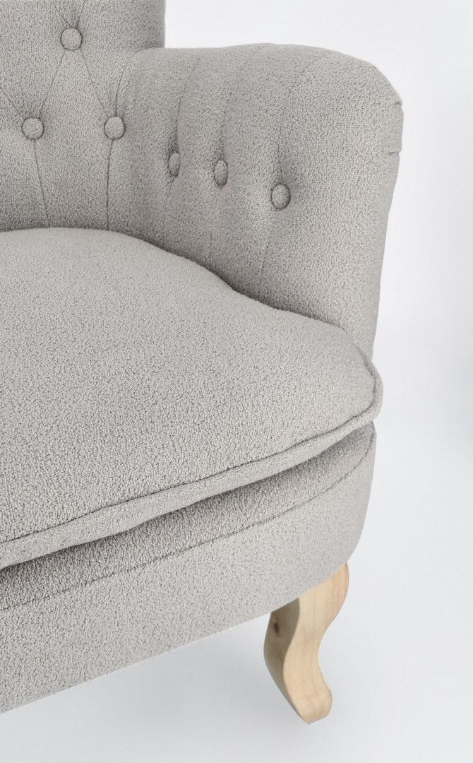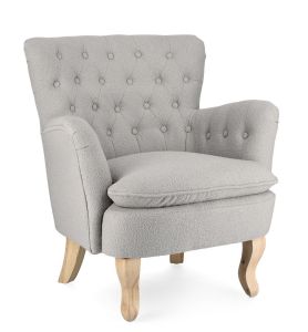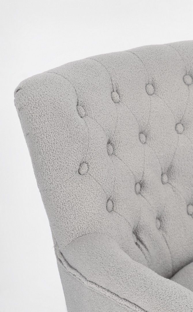 Fotel ORLINS to połączenie ponadczasowego uroku z luksusową, nowoczesną teksturą. Wyróżnia go eleganckie pikowanie Capitonné i przytulne obicie bouclé, idealne do wnętrz w stylu Klasycznym.