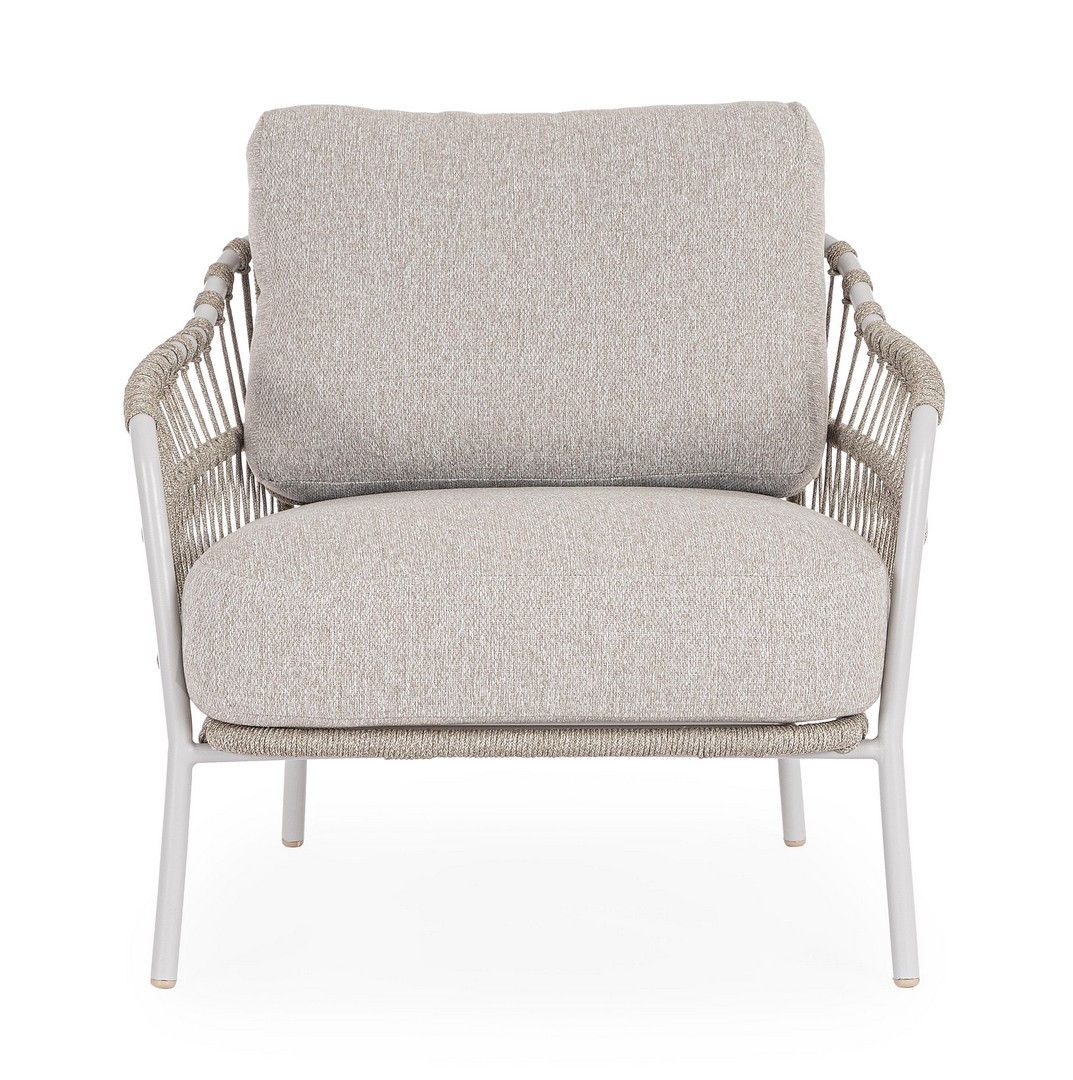 Fotel TALAIA to symbol luksusu i trwałości. Dzięki konstrukcji ze stali nierdzewnej i tkaninie Sunproof, jest to mebel odporny na warunki atmosferyczne, idealny do ogrodu lub na taras.