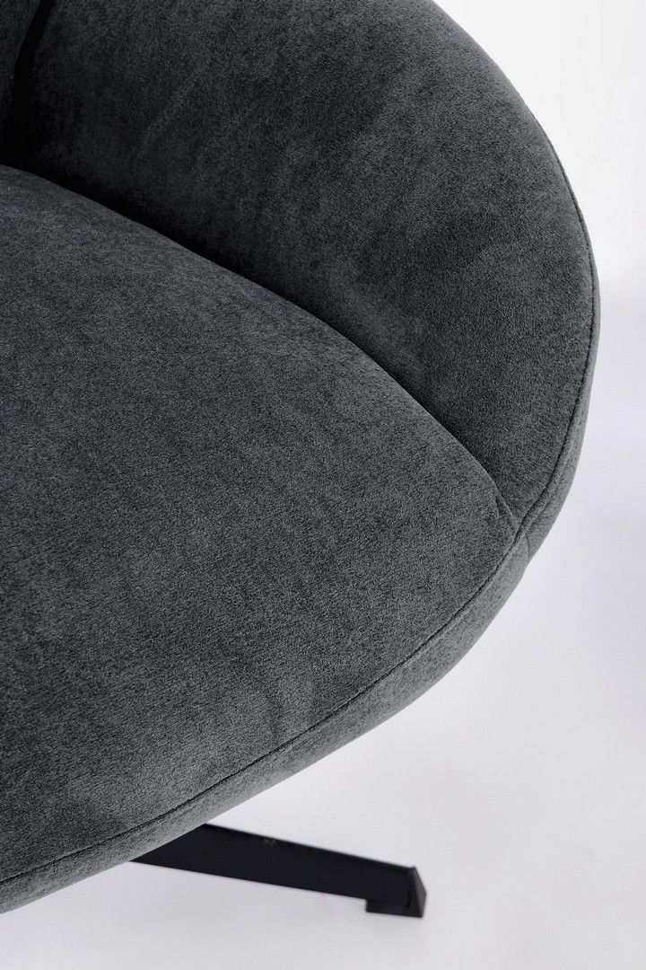 Fotel osadzony jest na stabilnej, czarnej stalowej podstawie malowanej proszkowo (wytrzymałej na zarysowania). Wzmocniony korpus siedziska i oparcia jest wypełniony pianką i pokryty miękkim poliestrem.