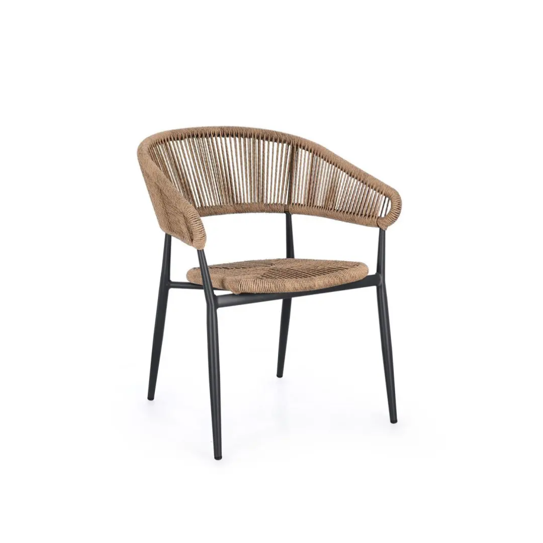 Krzesło ALGAIDA to synonim letniej lekkości i trwałości. Łączy w sobie minimalistyczną, ciemną ramę z kolorową plecionką, tworząc idealny mebel na taras w stylu Współczesnym.