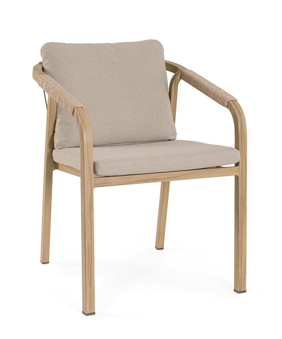 Krzesło KALIMERA to wyjątkowe połączenie stylu i funkcjonalności. Łączy ciepłą estetykę drewna z trwałością aluminium i wygodą, dzięki wodoodpornym, zdejmowanym poduszkom. Idealne na elegancki taras.