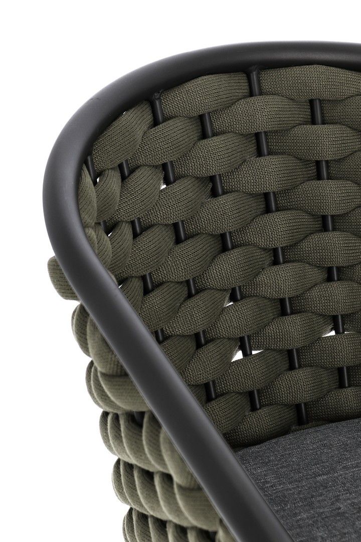 Kolorystyka: Kontrastowe połączenie ramy Charcoal z plecionką w kolorze Zielonym (Green) oraz szarą poduszką tworzy nowoczesny i elegancki wygląd.
