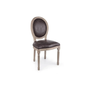 Siedzisko i oparcie są wyściełane (Padded), a całość pokrywa ekoskóra (Faux Leather) na bazie poliestru. To połączenie ułatwia pielęgnację i gwarantuje, że krzesło zachowa luksusowy wygląd przez długi czas. Krzesło charakteryzuje się eleganckim, owalnym kształtem oparcia.
