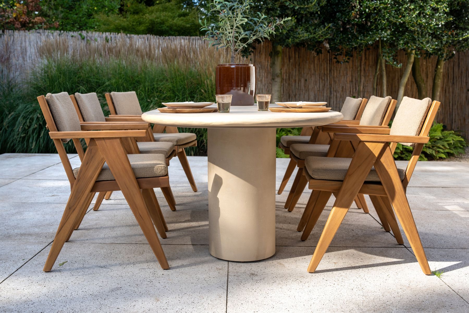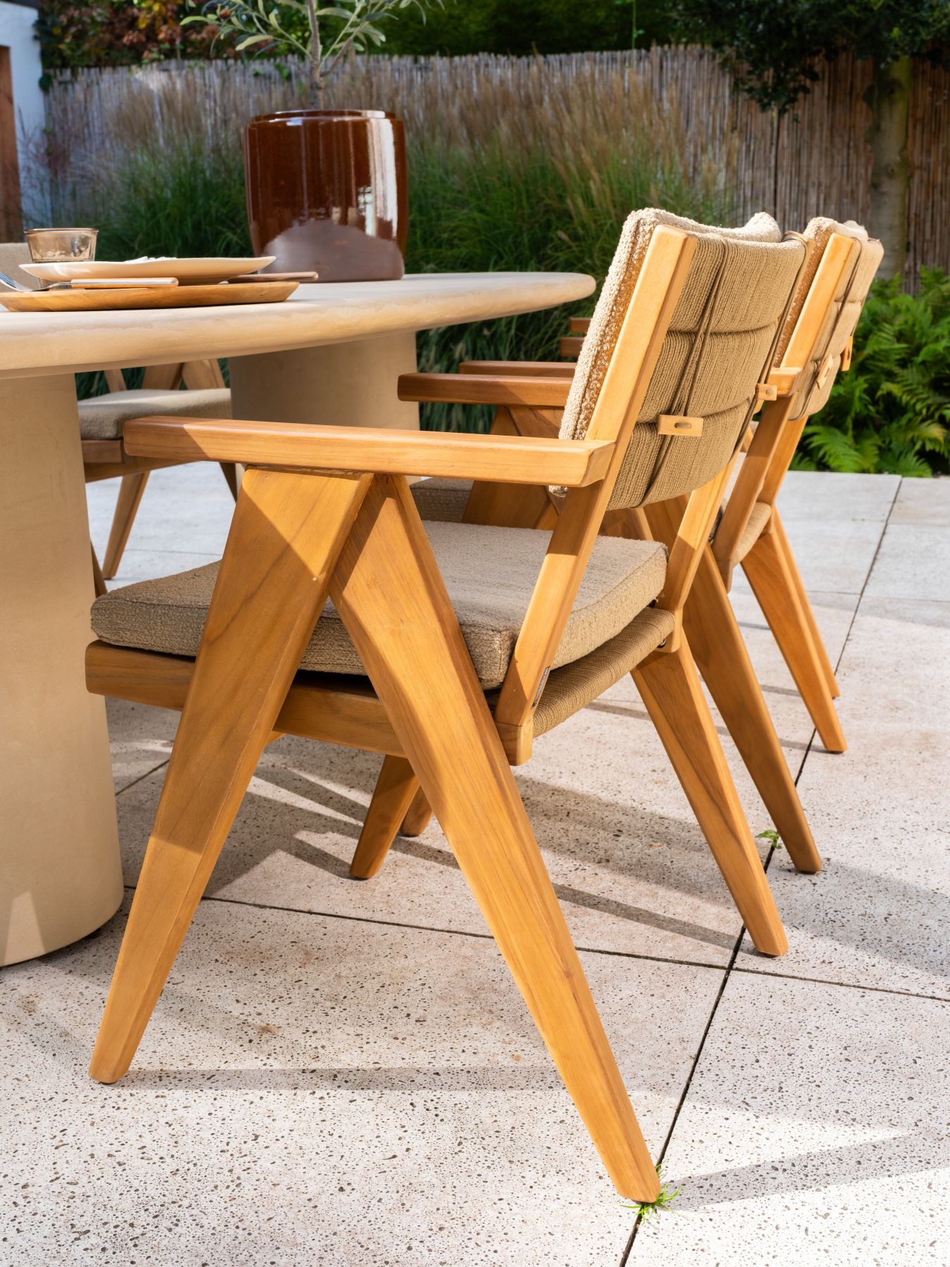 Ważna informacja: Choć teak jest materiałem całorocznym, poduszki w okresie zimowym lub podczas długotrwałych opadów zalecamy przechowywać w suchym miejscu lub pod pokrowcem, aby uniknąć powstawania pleśni wewnątrz pianki.