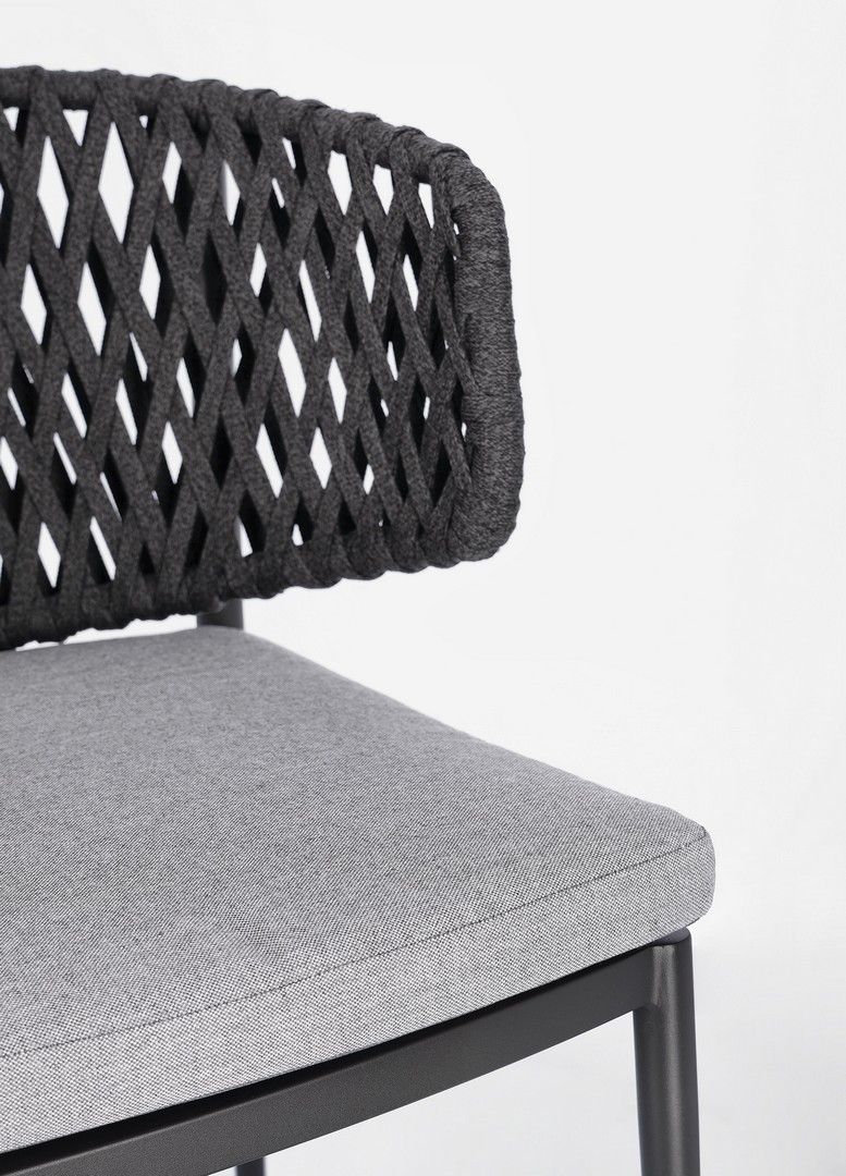 Krzesło NOELIA to idealny wybór na taras, łączący trwałość aluminium z elegancką, teksturowaną liną. Zaprojektowane, by służyć latami na zewnątrz, łączy styl z najwyższą odpornością na warunki atmosferyczne.