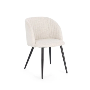 Siedzisko jest w całości pokryte modną tkaniną bouclé (95% poliester, 5% akryl) w eleganckim odcieniu kości słoniowej (Ivory). Ta unikalna, fakturowana tkanina nadaje krzesłu luksusowy i wyjątkowo przytulny charakter.