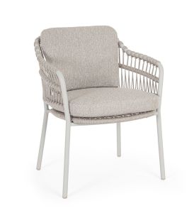 Fotel TALAIA FROSTY to synonim luksusu i trwałości. Dzięki konstrukcji ze stali nierdzewnej i tkaninie Sunproof, jest to mebel odporny na warunki atmosferyczne, idealny do ogrodu lub na taras.