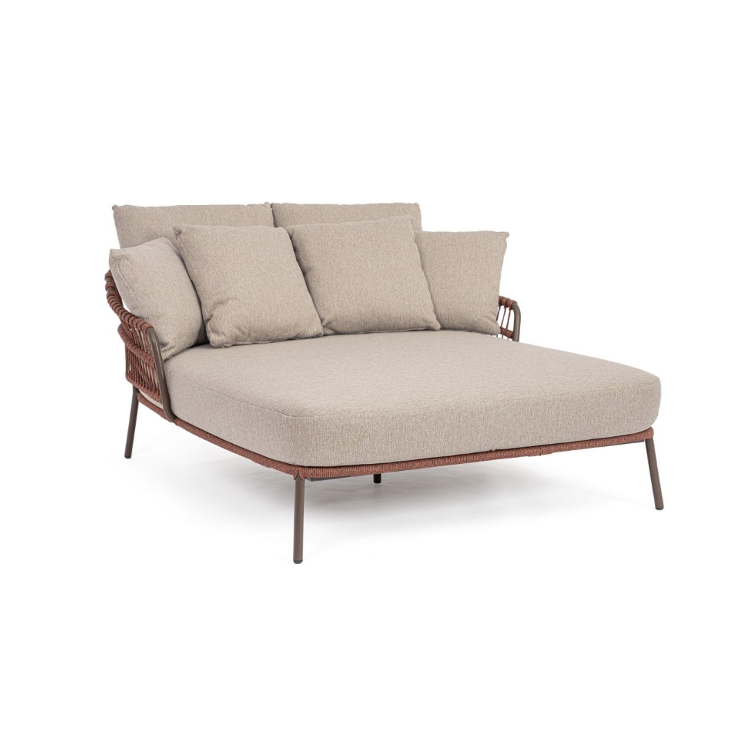 Leżanka TALAIA Daybed to symbol luksusowego wypoczynku dla dwojga. Łączy szeroką, otulającą formę ze stalą nierdzewną i wodoodpornymi poduszkami Sunproof, tworząc idealną, trwałą strefę relaksu.