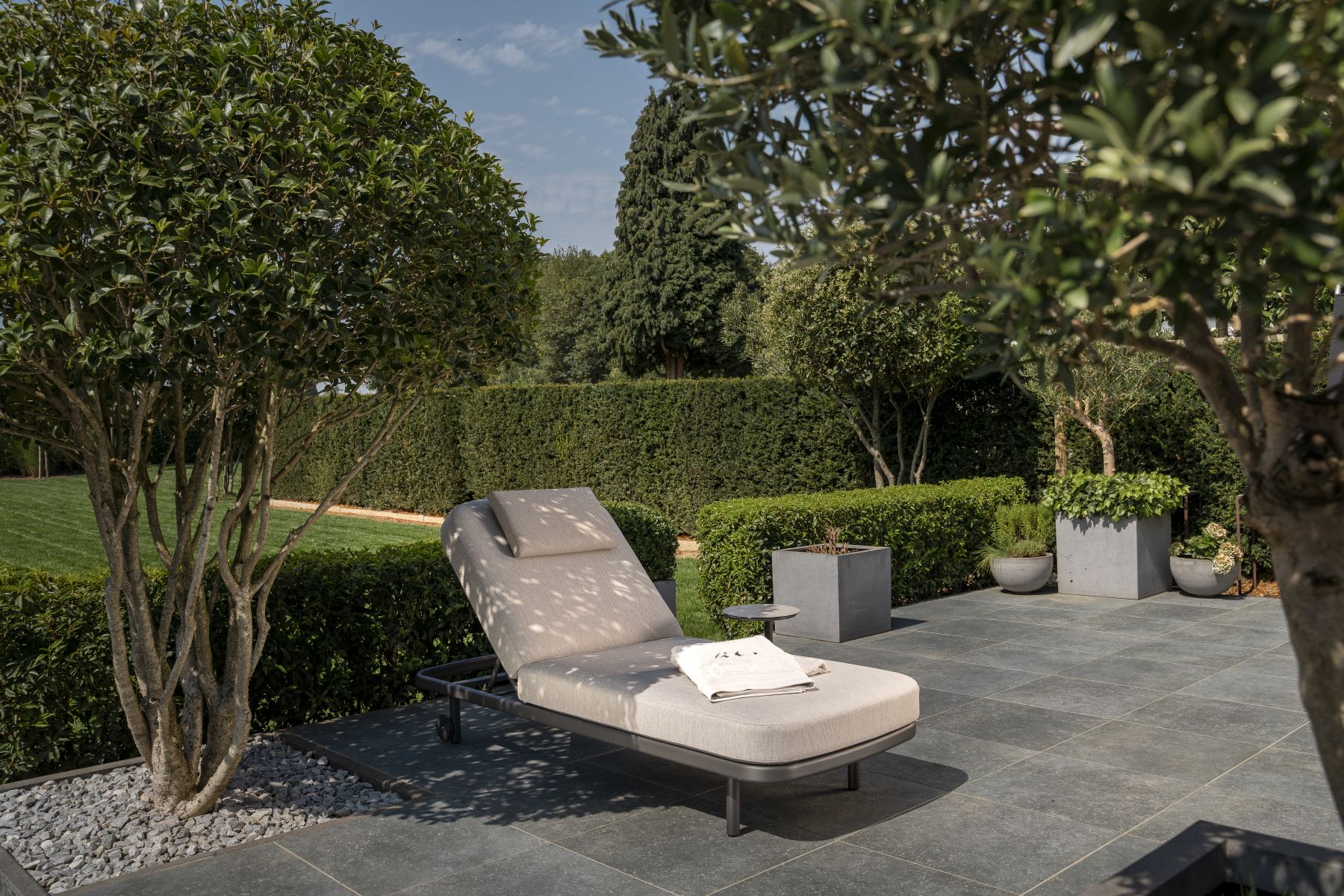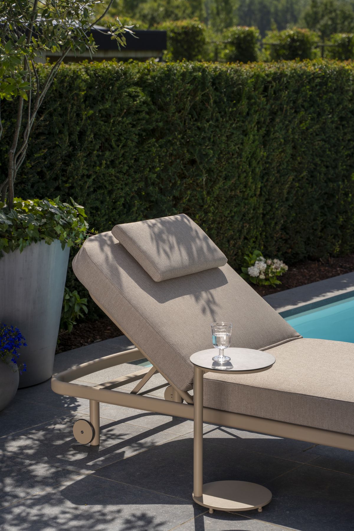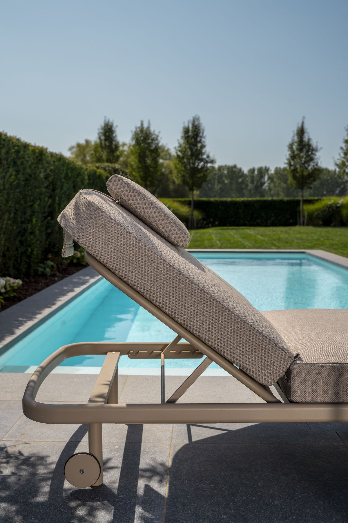 Podstawę leżaka stanowi rama wykonana z aluminium malowanej proszkowo, odporna na korozję. Boki wykończono stylowym splotem linowym (Rope), który nadaje konstrukcji przewiewności.