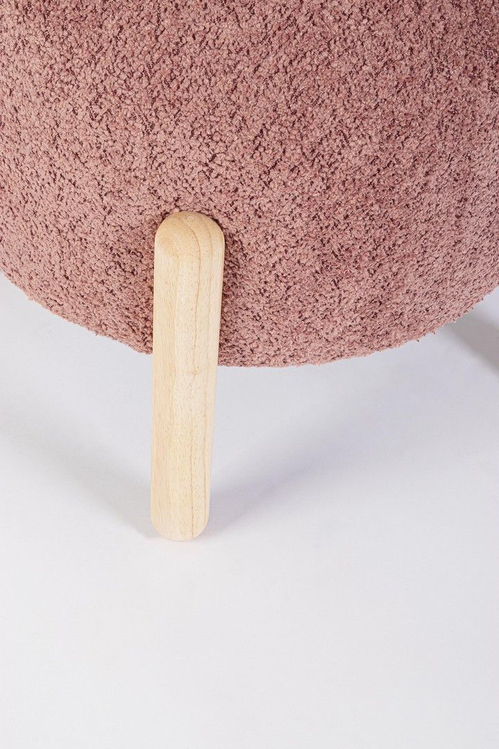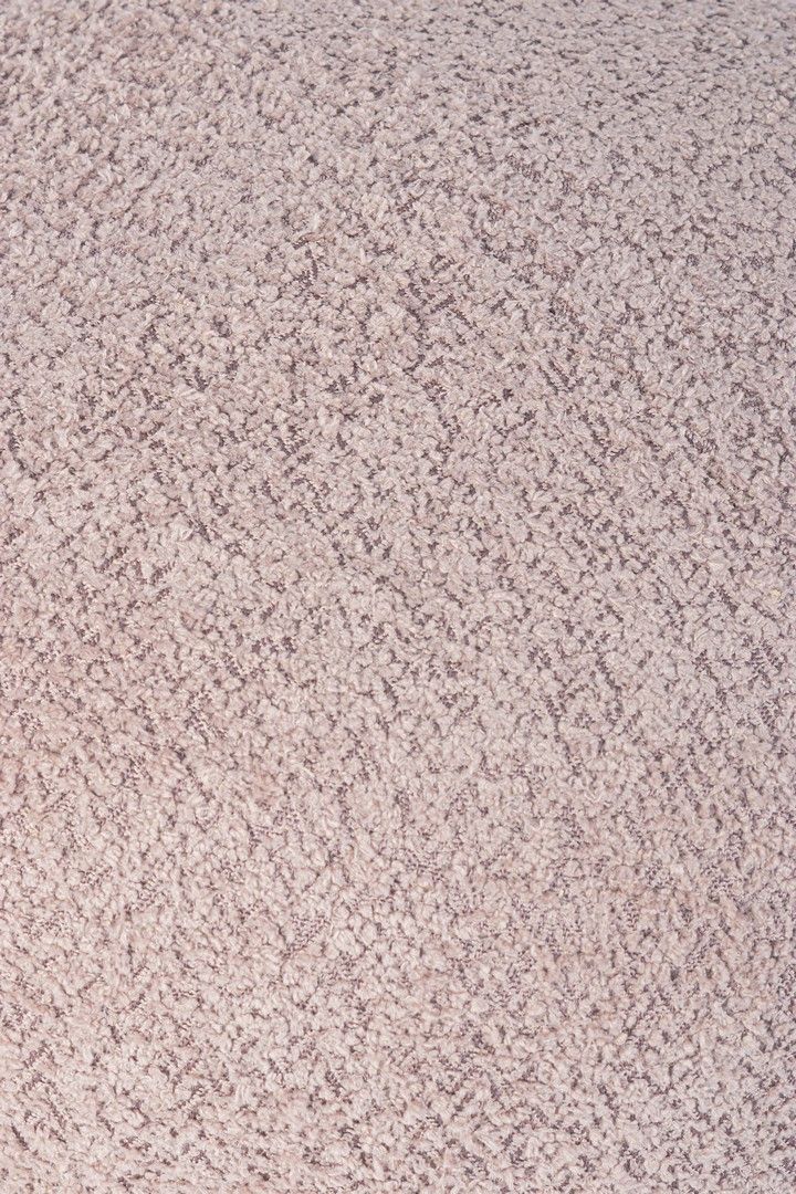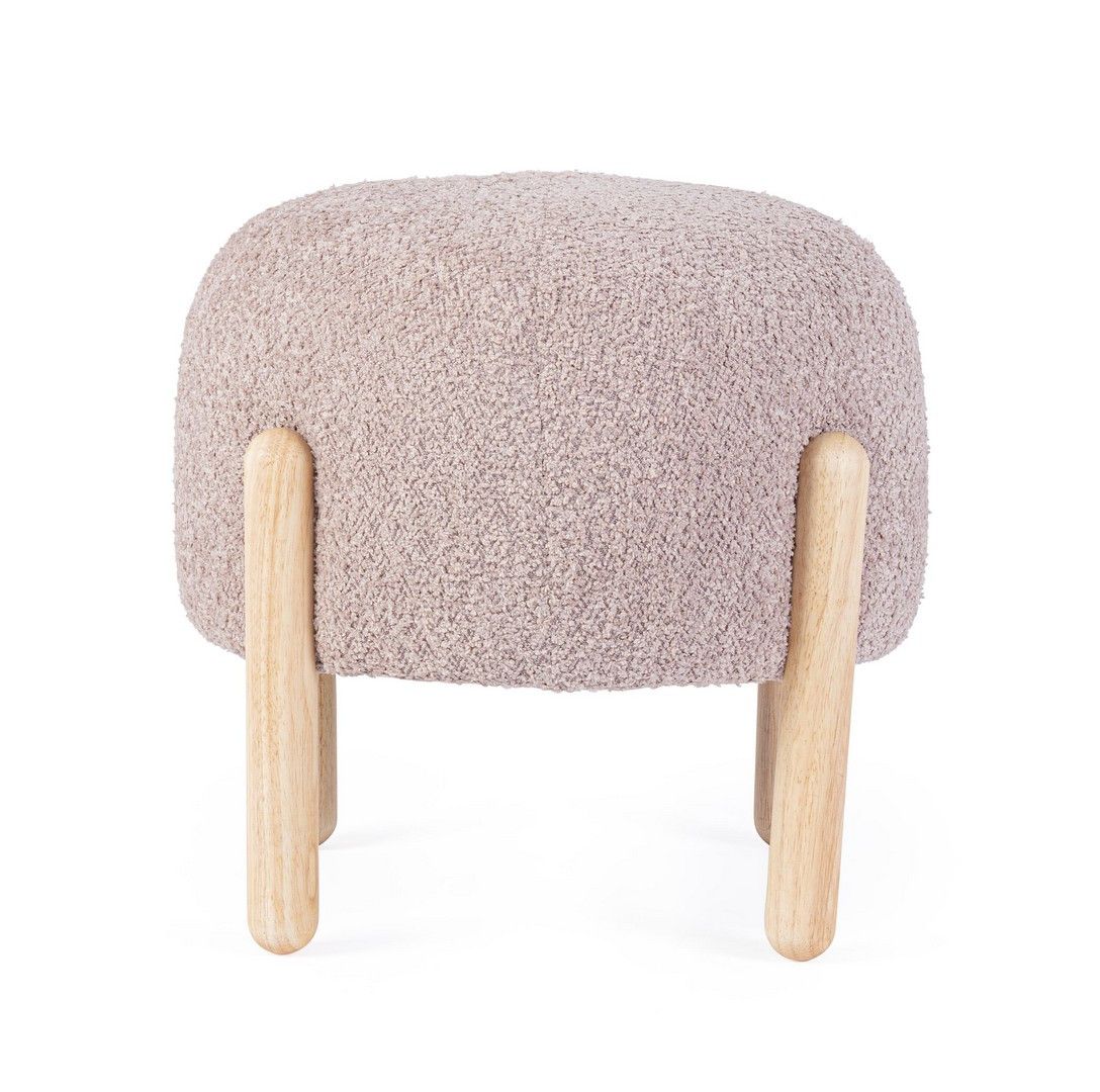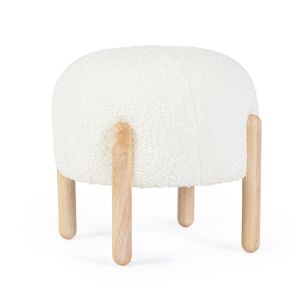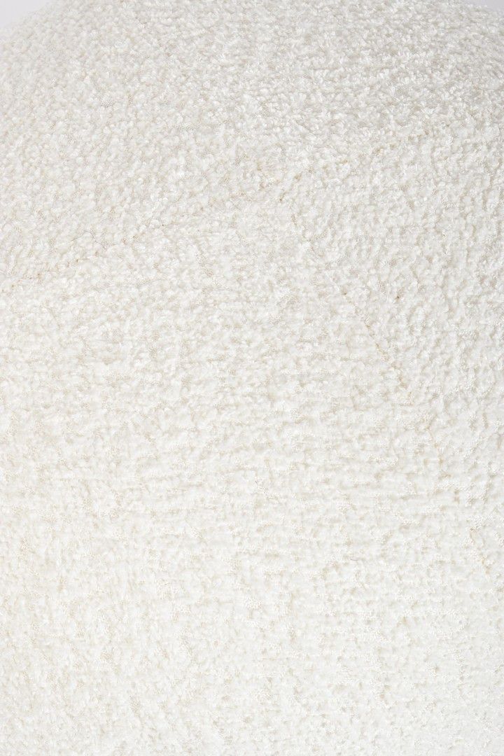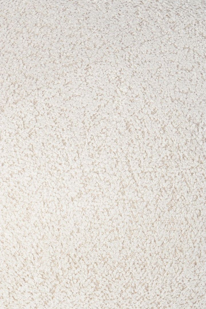 Podstawę siedziska (korpus) stanowi wzmocniona, solidna konstrukcja. Siedzisko jest wypełnione pianką poliuretanową o gęstości 25 kg/m³, co zapewnia miękki i sprężysty komfort. Pufa jest tapicerowana poliestrem z modnym efektem bouclé, który wnosi do wnętrza przytulną, teksturowaną głębię.