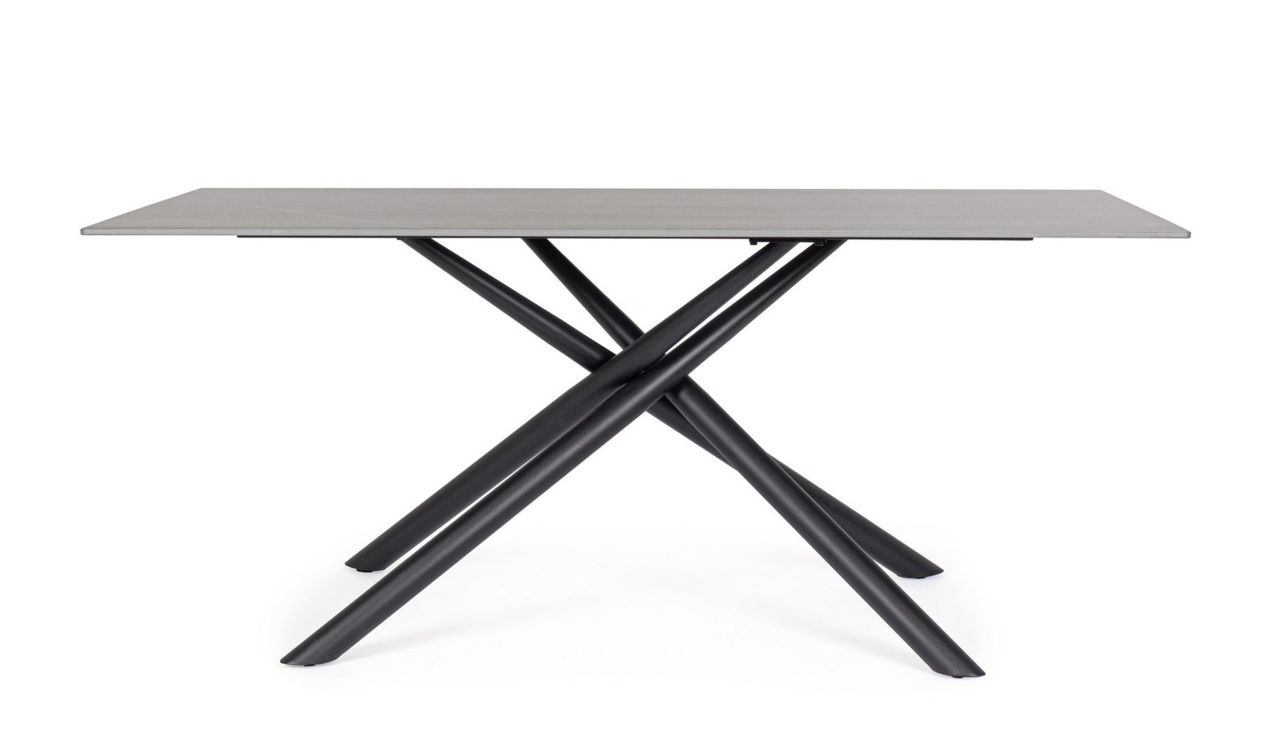 Stół Argita Black od włoskiego producenta Bizzotto to propozycja dla miłośników współczesnego stylu i wyrafinowanego designu. Blat wykonany z gresu porcelanowego z eleganckim efektem marmuru zachwyca głębią koloru i subtelnym połyskiem, dodając wnętrzu luksusowego charakteru.