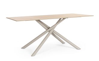 Stół Arjita Beige od włoskiego producenta Bizzotto to połączenie subtelnego designu z wysoką jakością wykonania. Blat z gresu porcelanowego z delikatnym efektem marmuru zachwyca elegancją i trwałością, tworząc idealne centrum każdej jadalni.