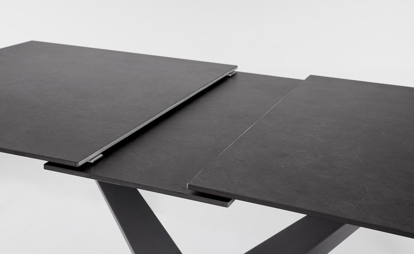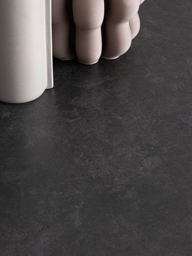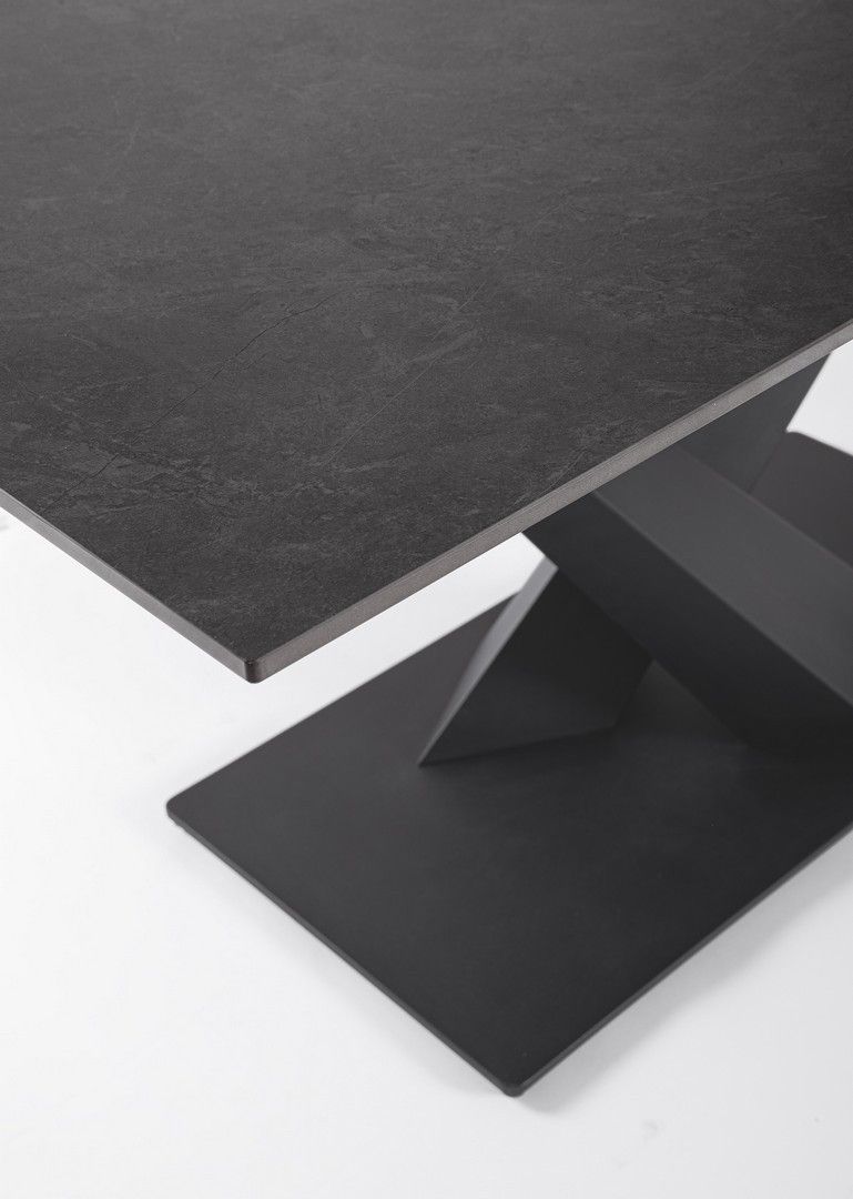 Black-stalowa podstawa w kolorze czarnym i blat z porcelanowego gresu w matowym czarnym marmurze.
