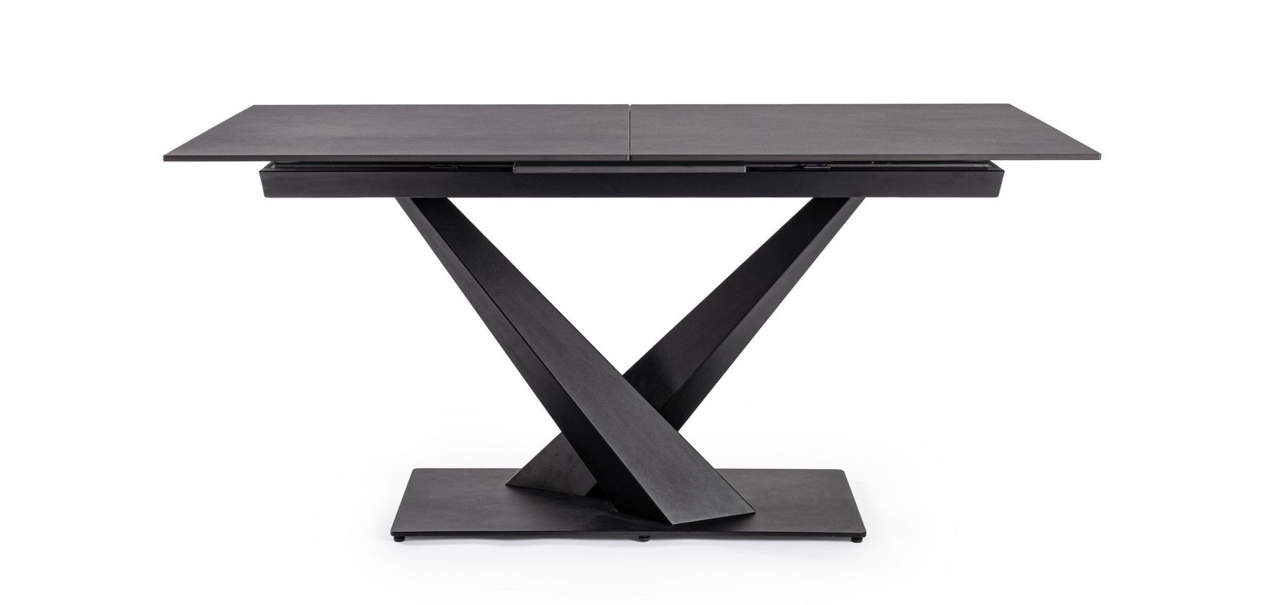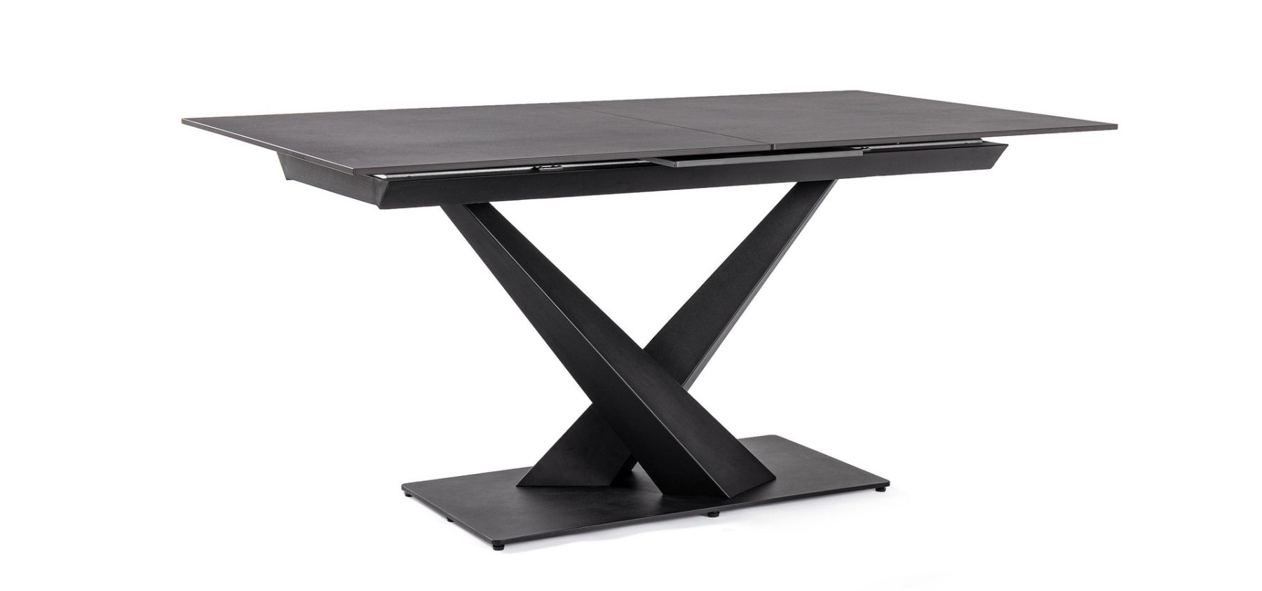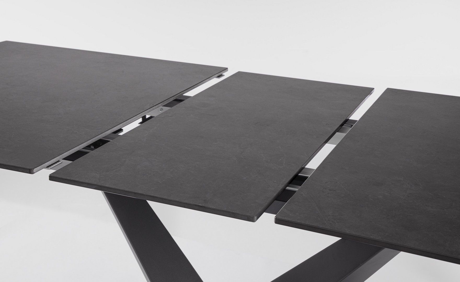 Black-stalowa podstawa w kolorze czarnym i blat z porcelanowego gresu w matowym czarnym marmurze.