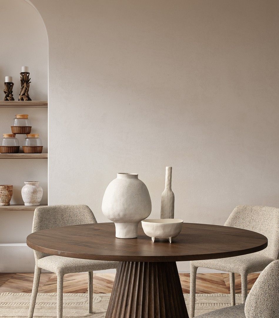 Stół Orissa to idealne połączenie naturalnego materiału, rzemieślniczego kunsztu i nowoczesnej formy - doskonały wybór do eleganckiej, przytulnej jadalni.