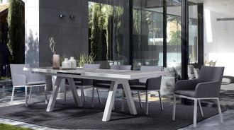 Stół KRION Lunar to połączenie współczesnego designu, solidnego wykonania i funkcjonalności, które doskonale sprawdzą się zarówno w jadalni, jak i w przestrzeni tarasowej. Konstrukcja z aluminium malowanego proszkowo (poliestrowo) gwarantuje trwałość, lekkość oraz odporność na warunki atmosferyczne.