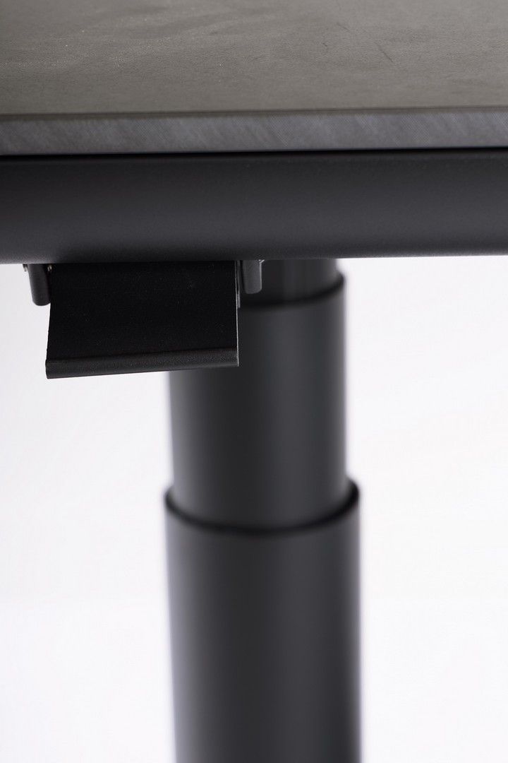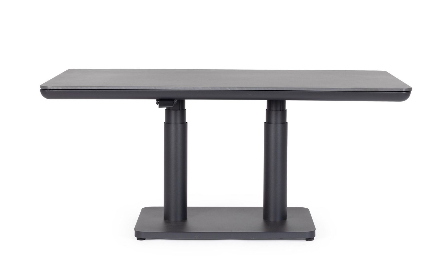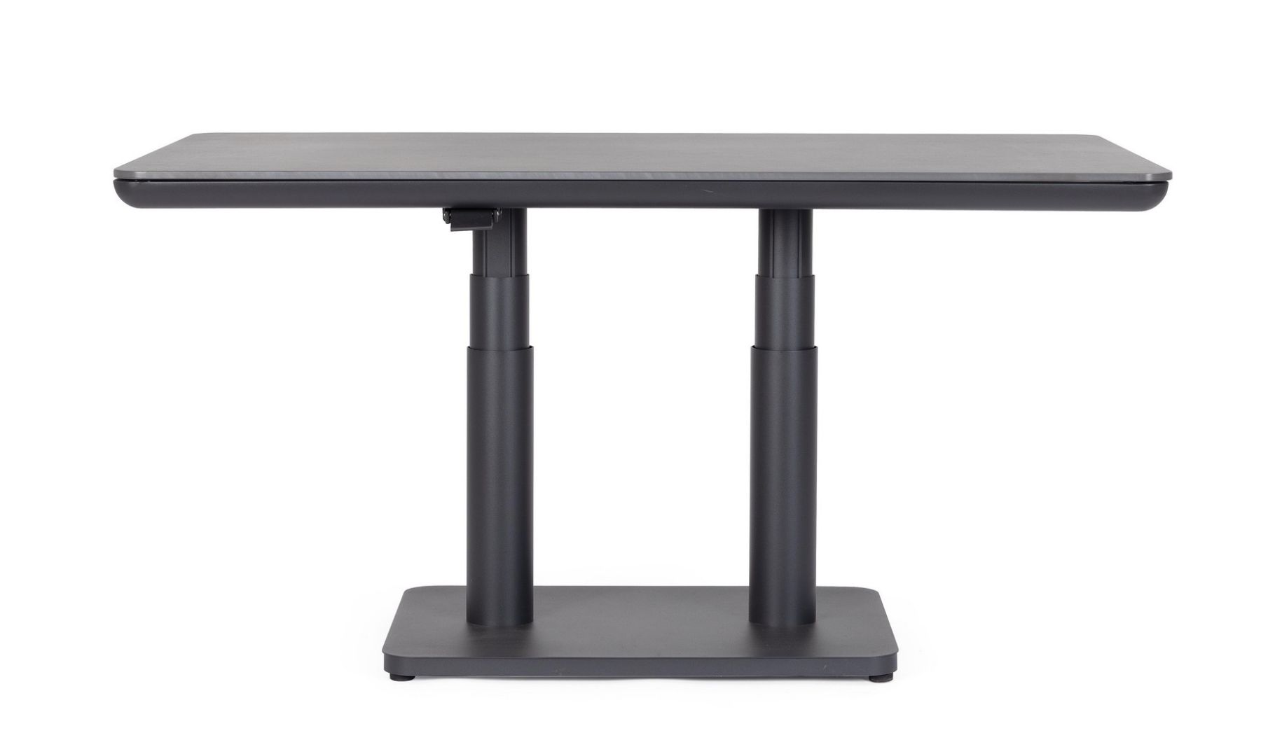 Blat z kamienia spiekanego (naturalny kamień obrabiany w wysokiej temperaturze) o grubości 11 mm zachwyca eleganckim grafitowym odcieniem charcoal, dodając całości nowoczesnego charakteru. Stół wyposażono w regulowany system wysokości (51-72 cm), który pozwala łatwo dopasować blat do różnych potrzeb - od niskiego stolika kawowego po standardowy stół jadalniany.