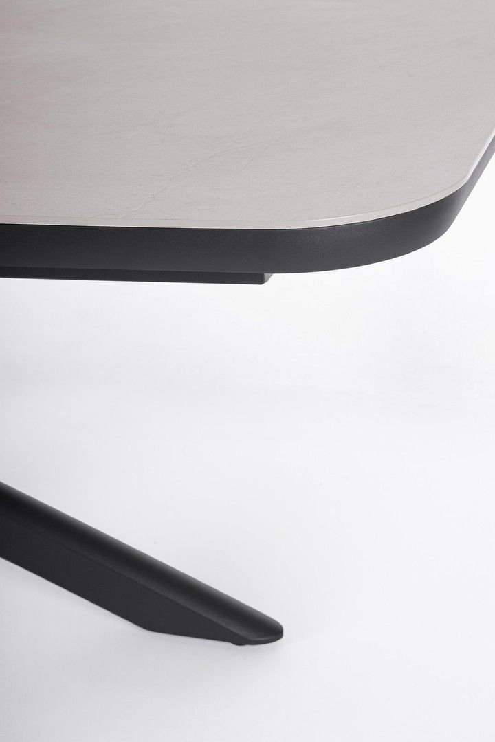 Stół wspiera się na efektownej, krzyżakowej nodze w kolorze czarnym, która nadaje mu stabilności i nowoczesnego charakteru.