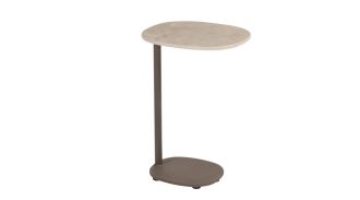 Blat stolika wykonany jest z wysokiej jakości ceramiki, co zapewnia trwałość oraz łatwość w utrzymaniu czystości, a dodatkowo odporny jest na zmienne warunki atmosferyczne. Stolik osadzony na solidnej ramie z aluminium malowanego proszkowo, co zapewnia odporność na korozję i długowieczność produktu.