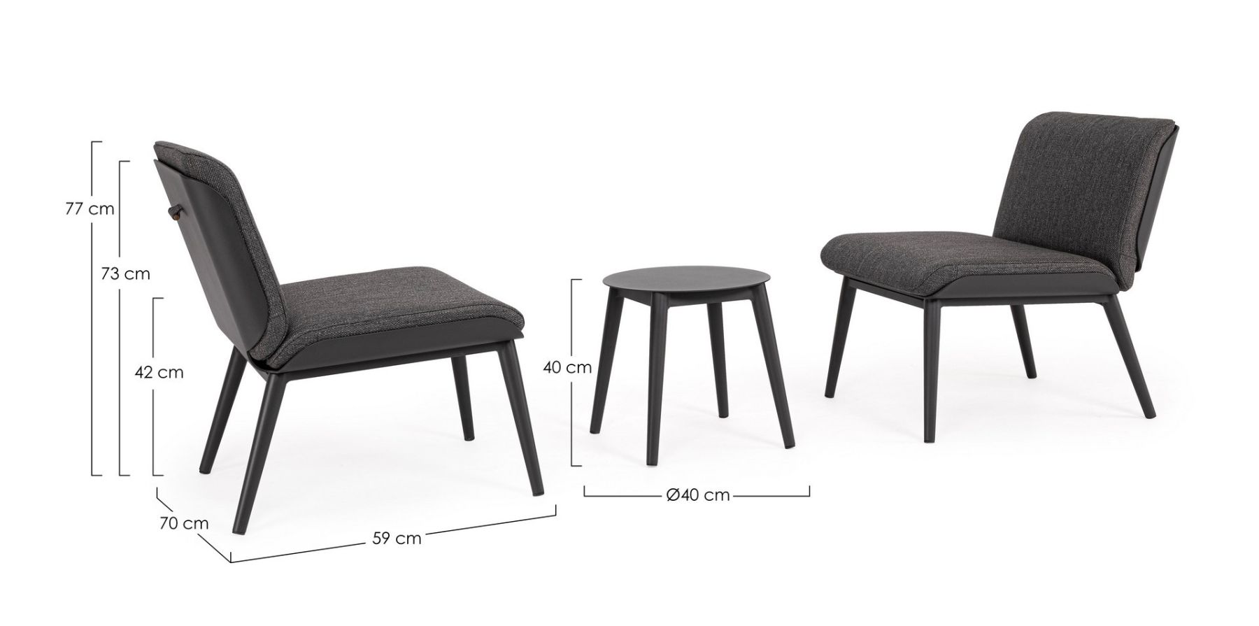 Wymiary zestawu (2 fotele lounge i stolik)