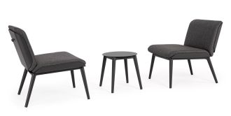 Ten zestaw 3-częściowy (dwa fotele lounge i stolik kawowy) jest w pełni przystosowany do warunków atmosferycznych: