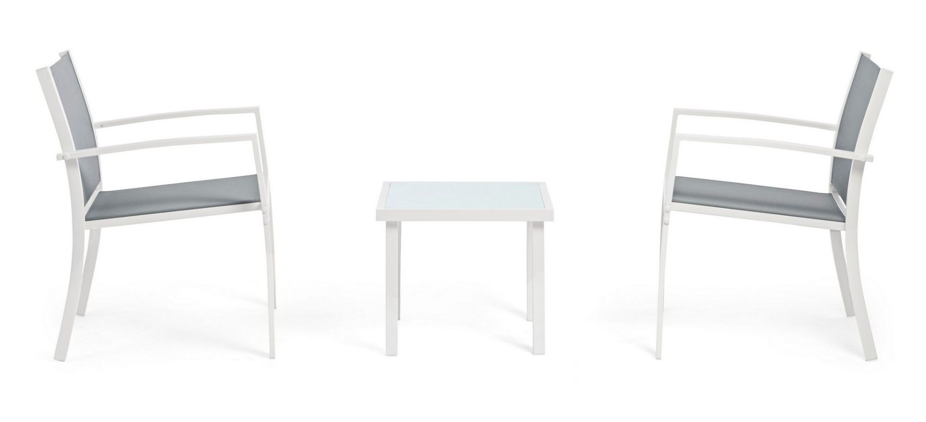WHITE/JA16: Rama biała z siedziskiem Textilene w kolorze jasno szary.