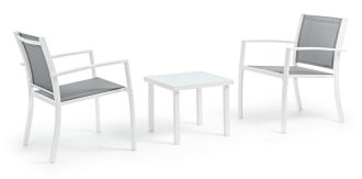 Ten zestaw 3-częściowy (dwa fotele i stolik kawowy) jest w pełni przystosowany do warunków atmosferycznych: