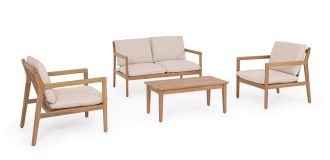 Zestaw wypoczynkowy DANUBIO to kwintesencja naturalnego, klasycznego designu. Łączy szlachetne, certyfikowane drewno akacjowe z wygodą wodoodpornych poduszek, tworząc idealną, 4-osobową strefę lounge.