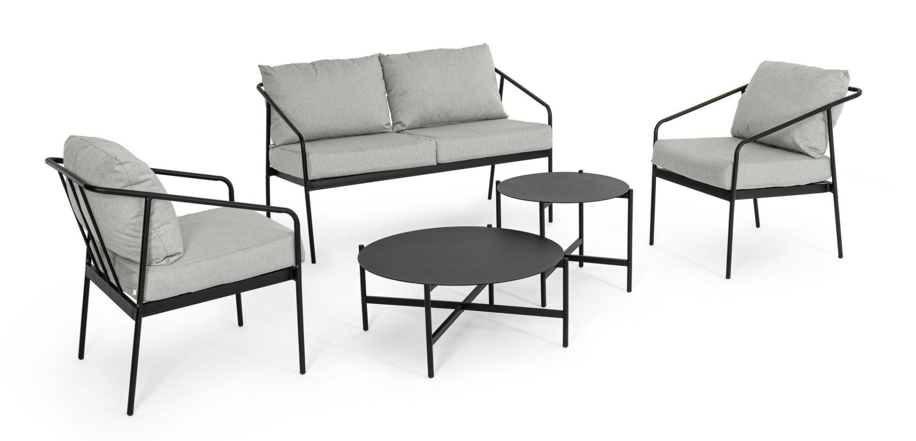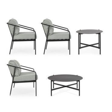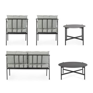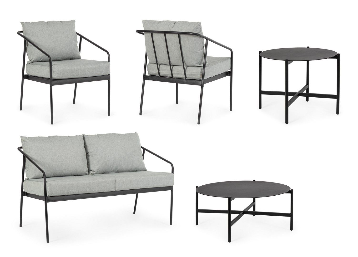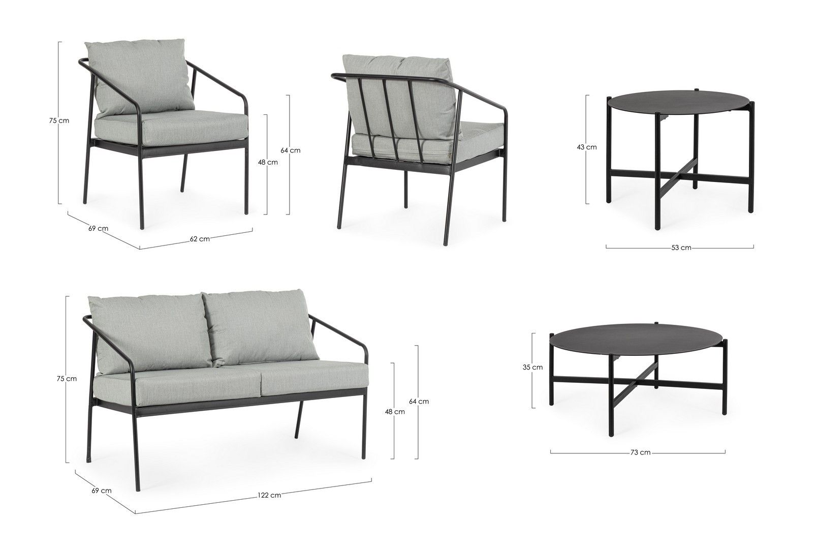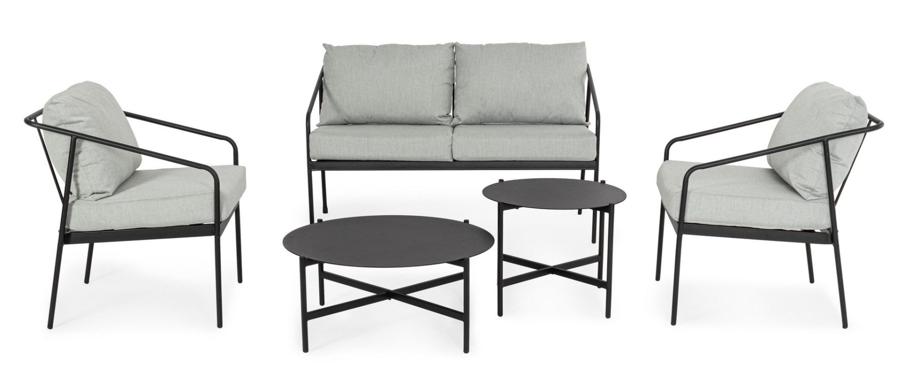 Zestaw wypoczynkowy FLORIAN to kwintesencja industrialnego, minimalistycznego designu w wersji outdoor. Jest to idealny, bezobsługowy komplet do stworzenia wygodnej strefy lounge dla 4 osób na tarasie lub w ogrodzie.