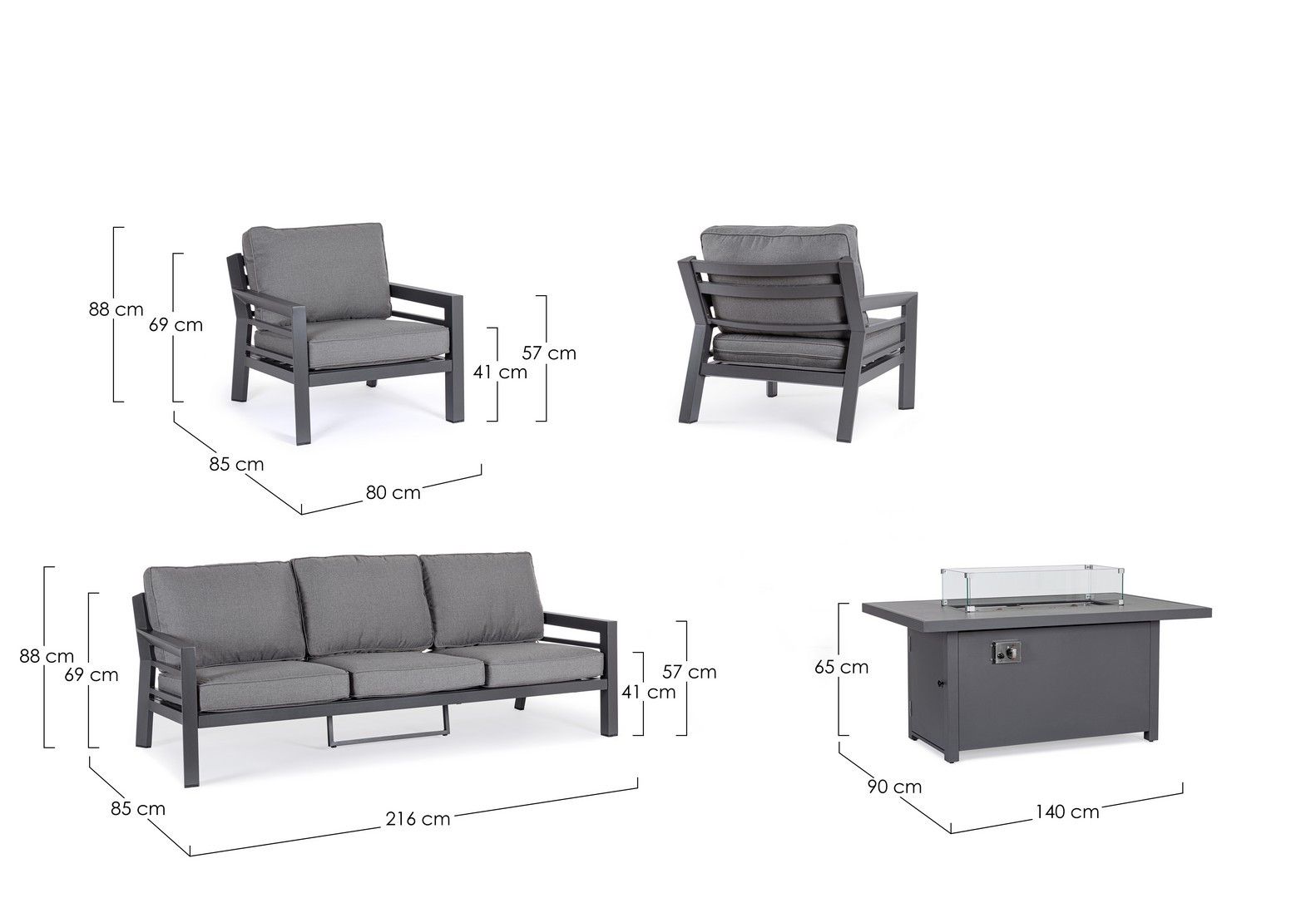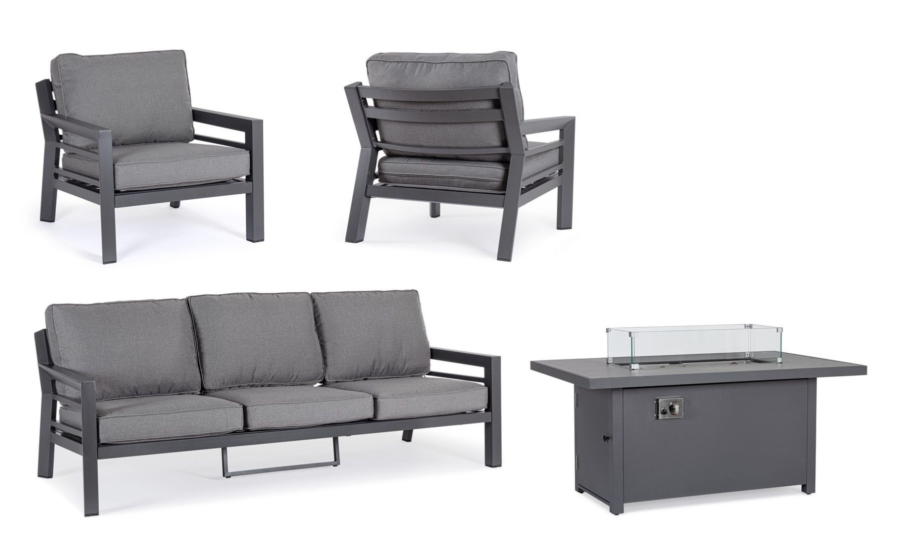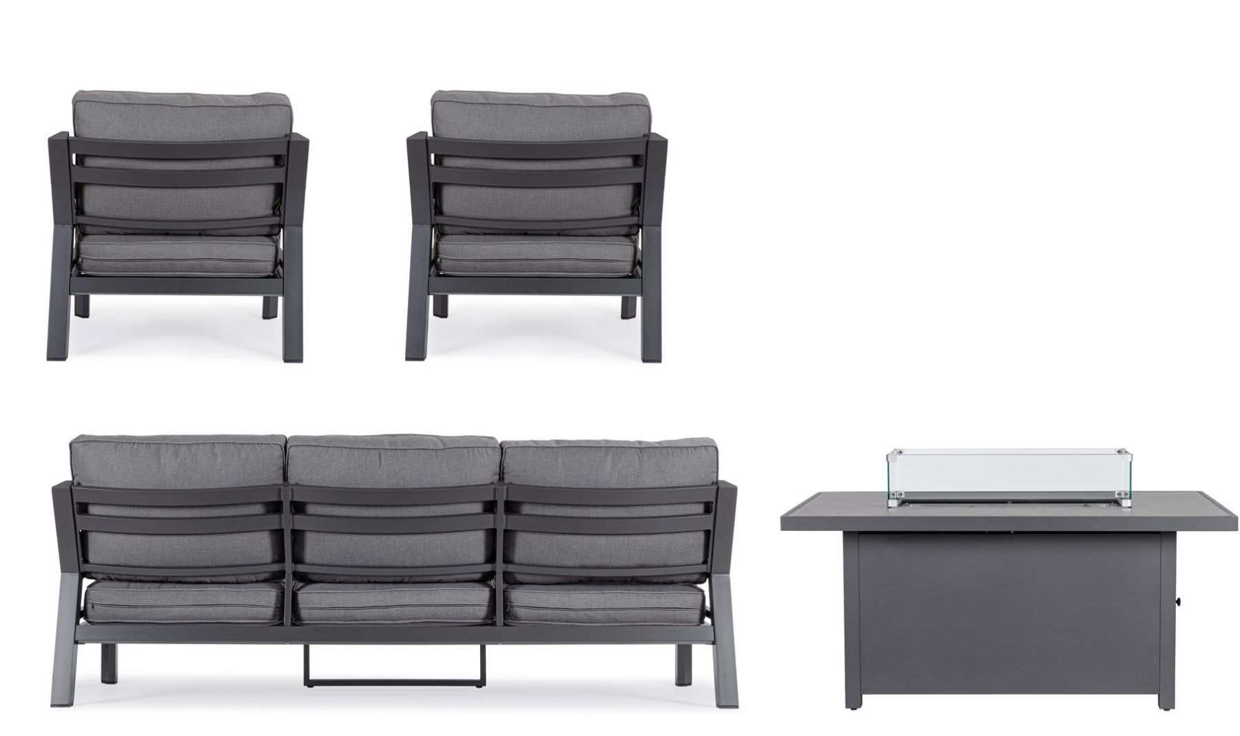 Zestaw wypoczynkowy HENDRIX to kwintesencja funkcjonalności outdoor, tworząca luksusową strefę lounge dla 5 osób z centralnym, gazowym paleniskiem Fire Pit. Mebel łączy bezkompromisową trwałość aluminium z wygodnymi, wodoodpornymi poduszkami.