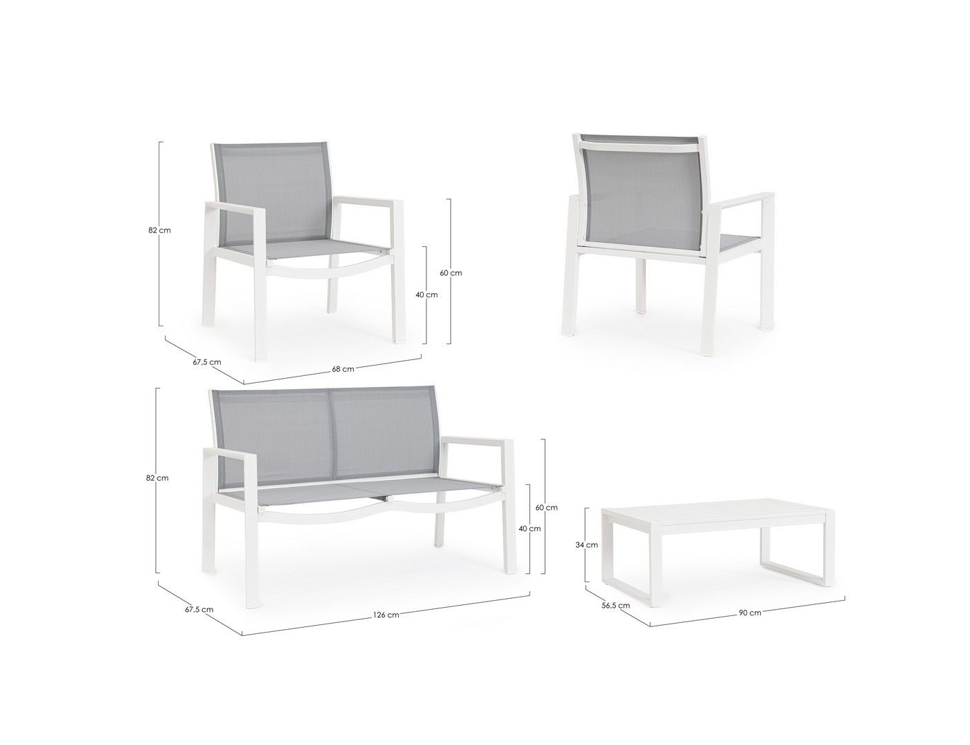 Ten zestaw 4-częściowy (sofa 2-osobowa, dwa fotele i stolik kawowy) jest w pełni przystosowany do warunków atmosferycznych: