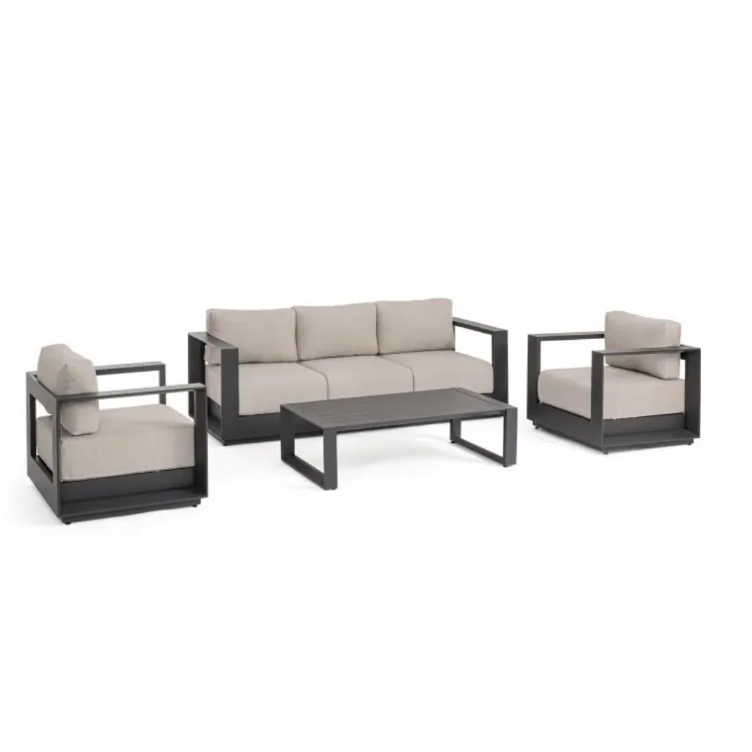 Zestaw wypoczynkowy MOSES to kwintesencja minimalistycznego, geometrycznego designu i bezkompromisowej trwałości outdoor. Jest idealny do stworzenia luksusowej strefy lounge na tarasie lub w ogrodzie.