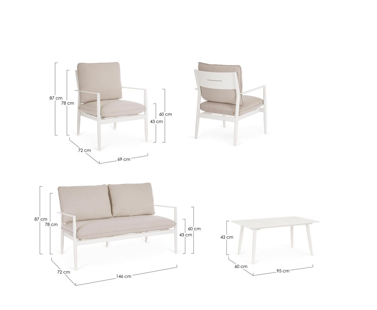 Sofa (B) (1 szt.) | 146 cm | 72 cm | 87 cm | 43 cm |