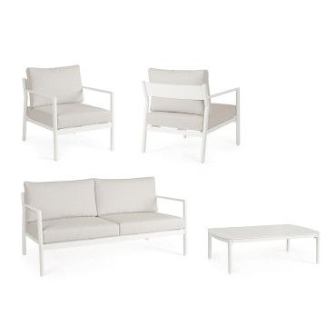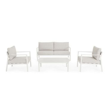 Ten zestaw 4-częściowy (sofa 2-osobowa, dwa fotele i stolik kawowy) jest w pełni przystosowany do warunków atmosferycznych: