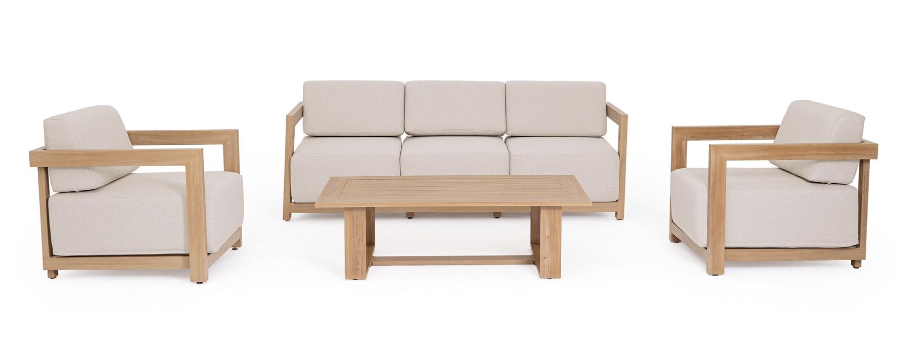 Zestaw wypoczynkowy THESEUS to esencja elegancji outdoor, która łączy ciepłą estetykę drewna z bezkompromisową, nowoczesną technologią. Jest to idealny komplet do stworzenia luksusowej, 5-osobowej strefy lounge na tarasie.