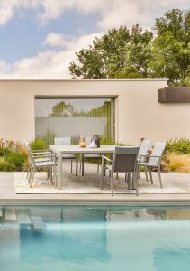 4 Seasons Outdoors використовує лише нержавіючу сталь 304, де оксидна оболонка матеріалу закриває основні матеріали. У багатьох моделях садових меблів ми покриваємо нержавіючу сталь матовим антрацитовим кольором для нейтрального зовнішнього вигляду та кращої стійкості до атмосферних впливів, тому майже не потрібно обслуговування.